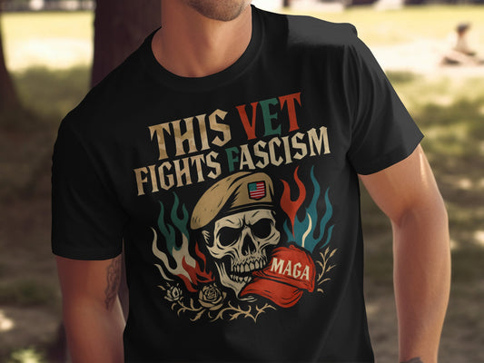 This Vet Fights Fascism Graphic Statement T-Shirts