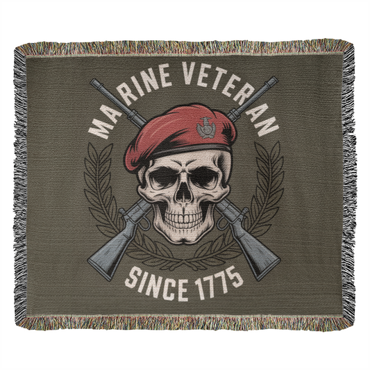 Marine Veteran Woven Blanket – "Since '75" Skull & Rifles Military Throw