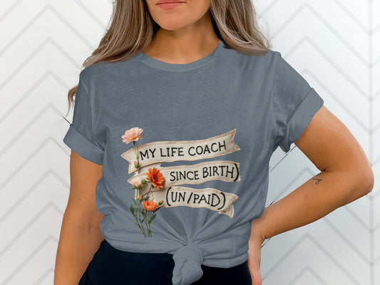 Mom Shirts: Hilarious My Life Coach Since Birth Tee for MomsRegular price From $29.95 USDRegular priceUnit price / per$39.00 USDSale price From $29.95 USDSale