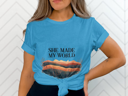 Mom Shirts: She Made My World Graphic Design TeeRegular price From $29.95 USDRegular priceUnit price / per$39.00 USDSale price From $29.95 USDSale