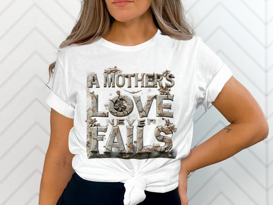 Mom Shirts: Inspirational Mother's Love Never Fails TeeRegular price From $29.95 USDRegular priceUnit price / per$39.00 USDSale price From $29.95 USDSale