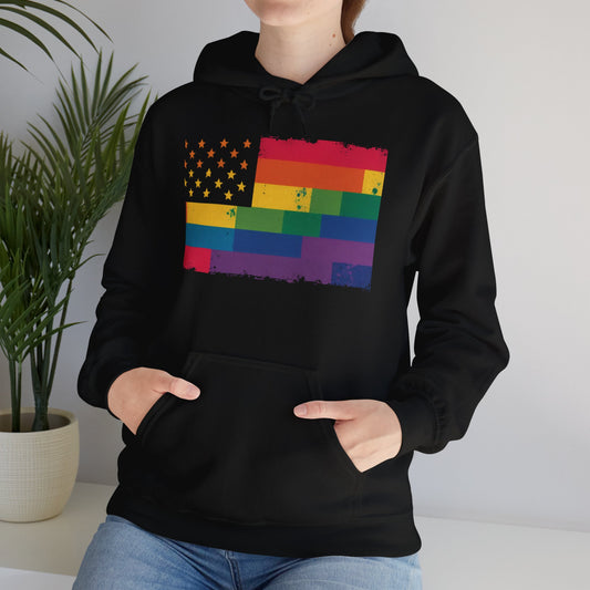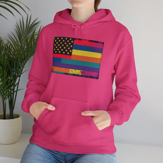 Pride American Flag Hoodie - Unisex Heavy Blend Sweatshirt