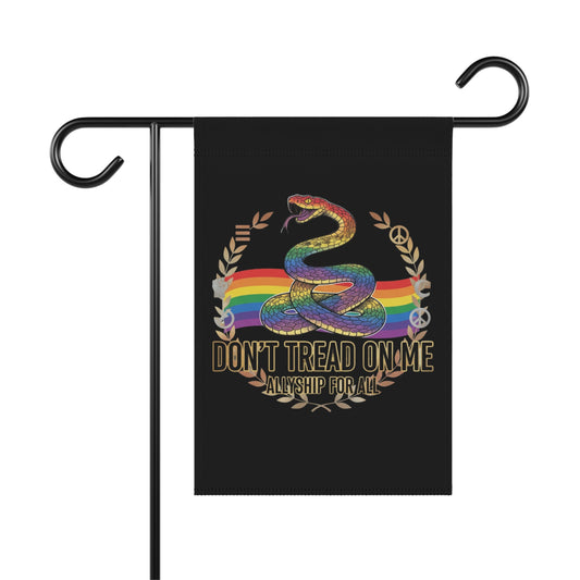 Vibrant Rainbow Snake Don't Tread On Me Allyship For All garden flag Pole, hooks, or fasteners are not included