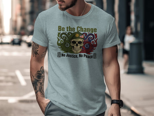 Be the Change No Justice No Peace Skull Graphic T-Shirts