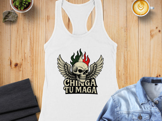 Chinga Tu Maga Skull Flags USA and Italy Design Tank Tops