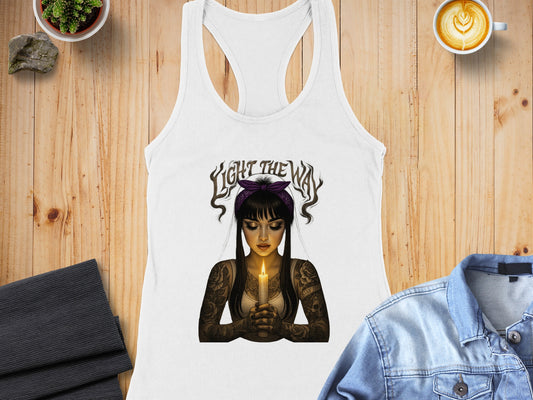 Light The Way Tattooed Woman Holding Candle Tank Tops