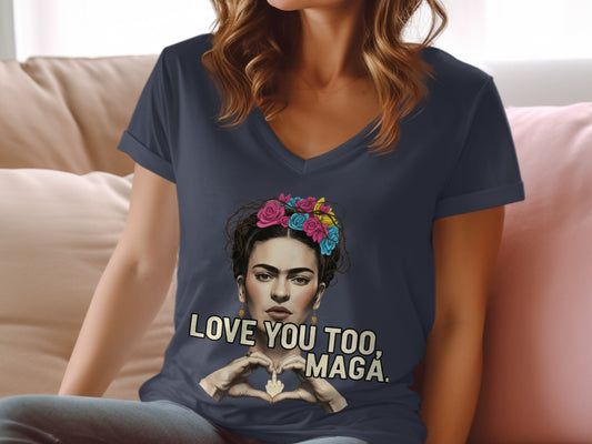 Frida Kahlo Protesting V Neck shirt Love You Too T-Shirts