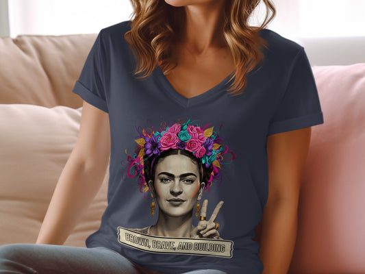 Frida Kahlo Protesting V Neck shirt Brown Brave Building T-Shirts