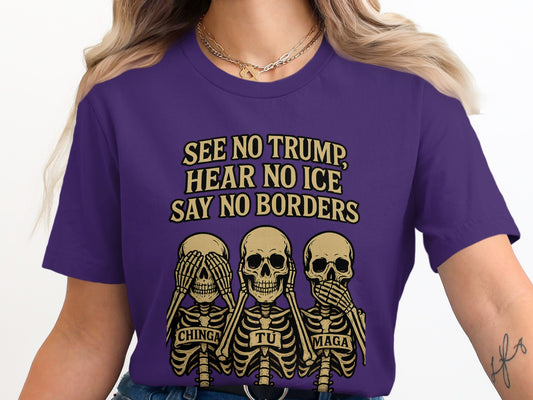 See No Trump Hear No Ice Say No Borders T-Shirts