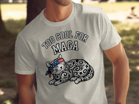 Too Cool For MAGA Cat Graphic Rebellious T-Shirts