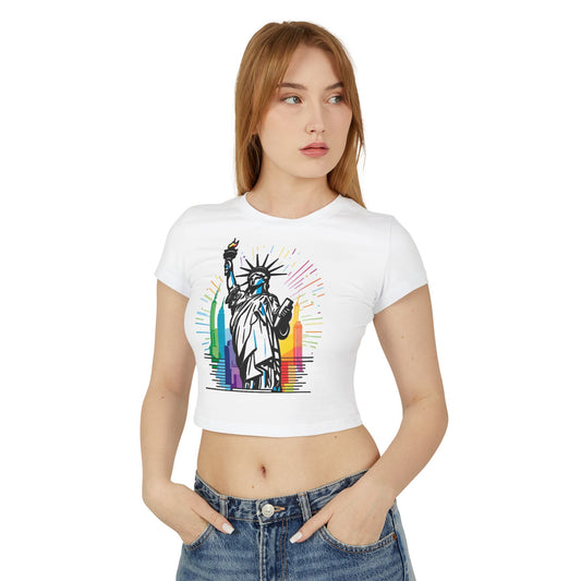 Pride baby tee Colorful Statue of Liberty Women's Baby Tee - Trendy NYC Graphic T-Shirt