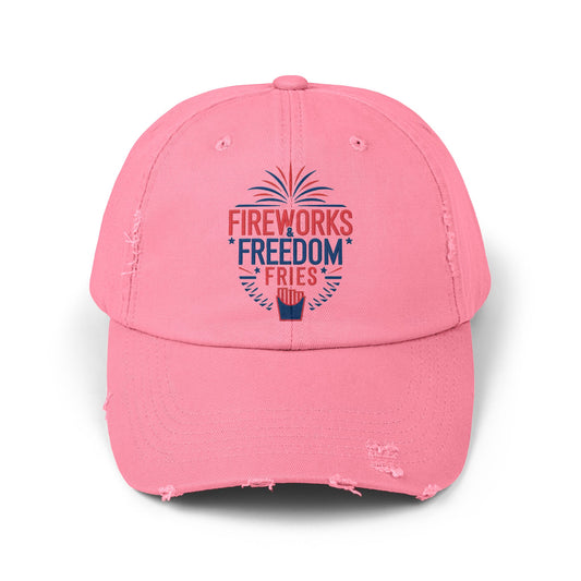 Patriotic Distressed Cap - "Fireworks Freedom Fries"