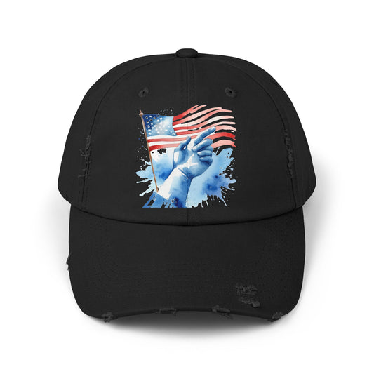Unisex Distressed Cap with Patriotic Hand Design
