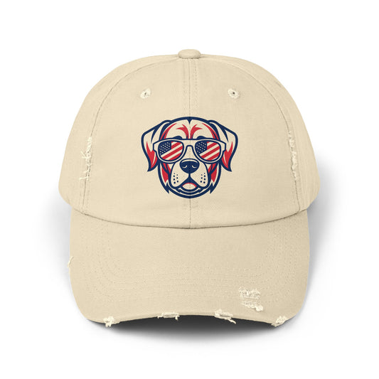 Unisex Distressed Cap - Cool Dog in Sunglasses Design