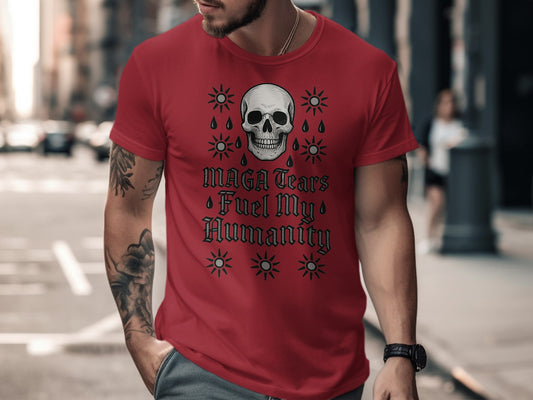 Maga Tears Fuel My Humanity Skull With Sun Symbols T-Shirts