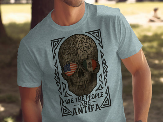 We the People Are Antifa With Flags Skull Art T-Shirts