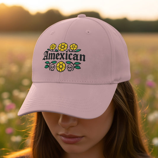 Amexican with Skull and Yellow Flowers Funny Design hat embroidery