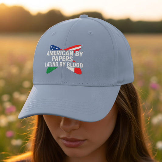 American By Papers Latino By Blood Attitude Design hat embroidery