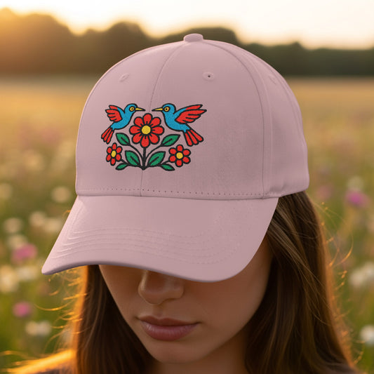 Two Birds above Flowers Graphic Design Hat Embroidery