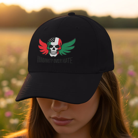 Humanity Over Hate Skull Graphic Design With Wings hat embroidery