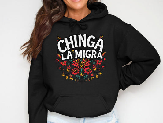 Vibrant Floral CHINGA LA MIGRA Design Hoodies