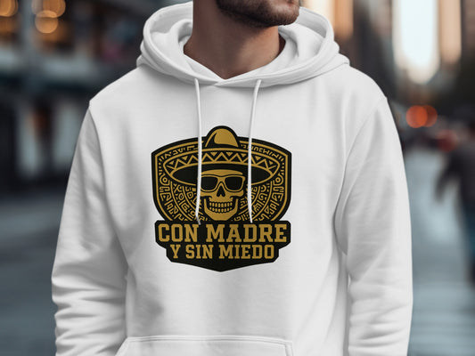 Con Madre Y Sin Miedo Skull With Sombrero Image Hoodies