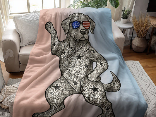 American Flag Throw with Dog Design USA Blanket for 4th of July Blankets