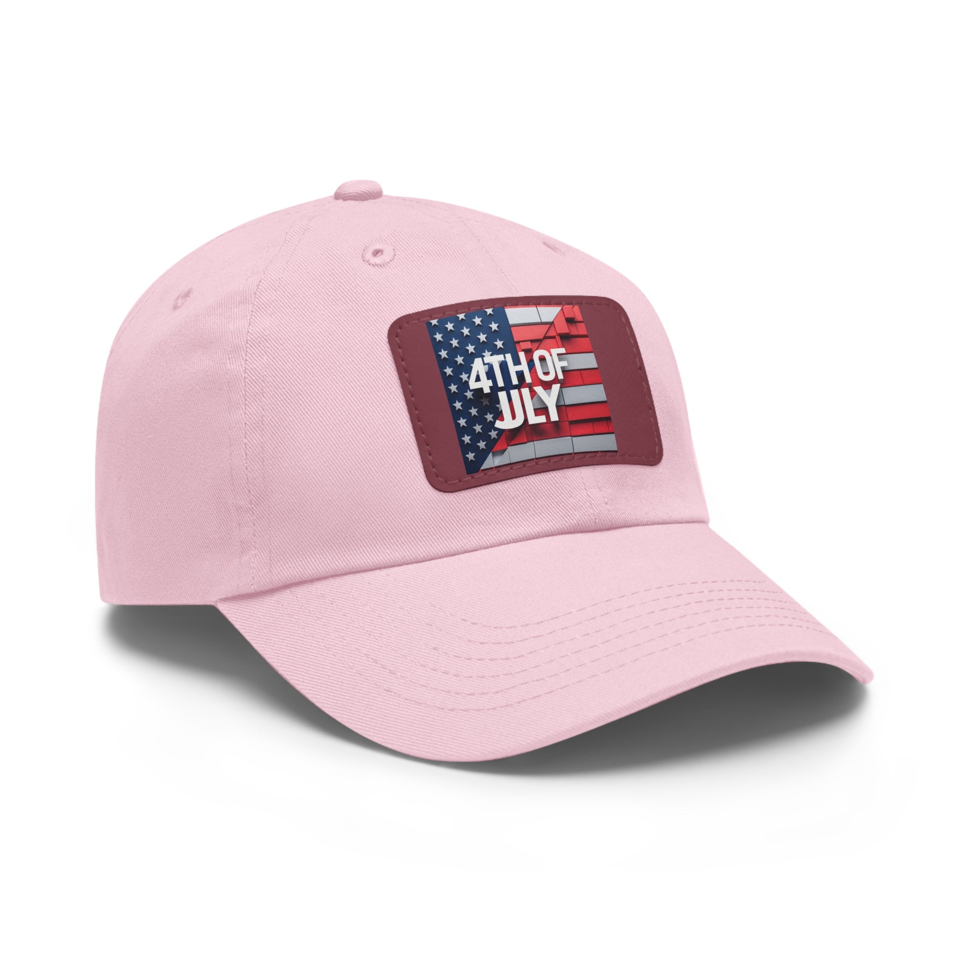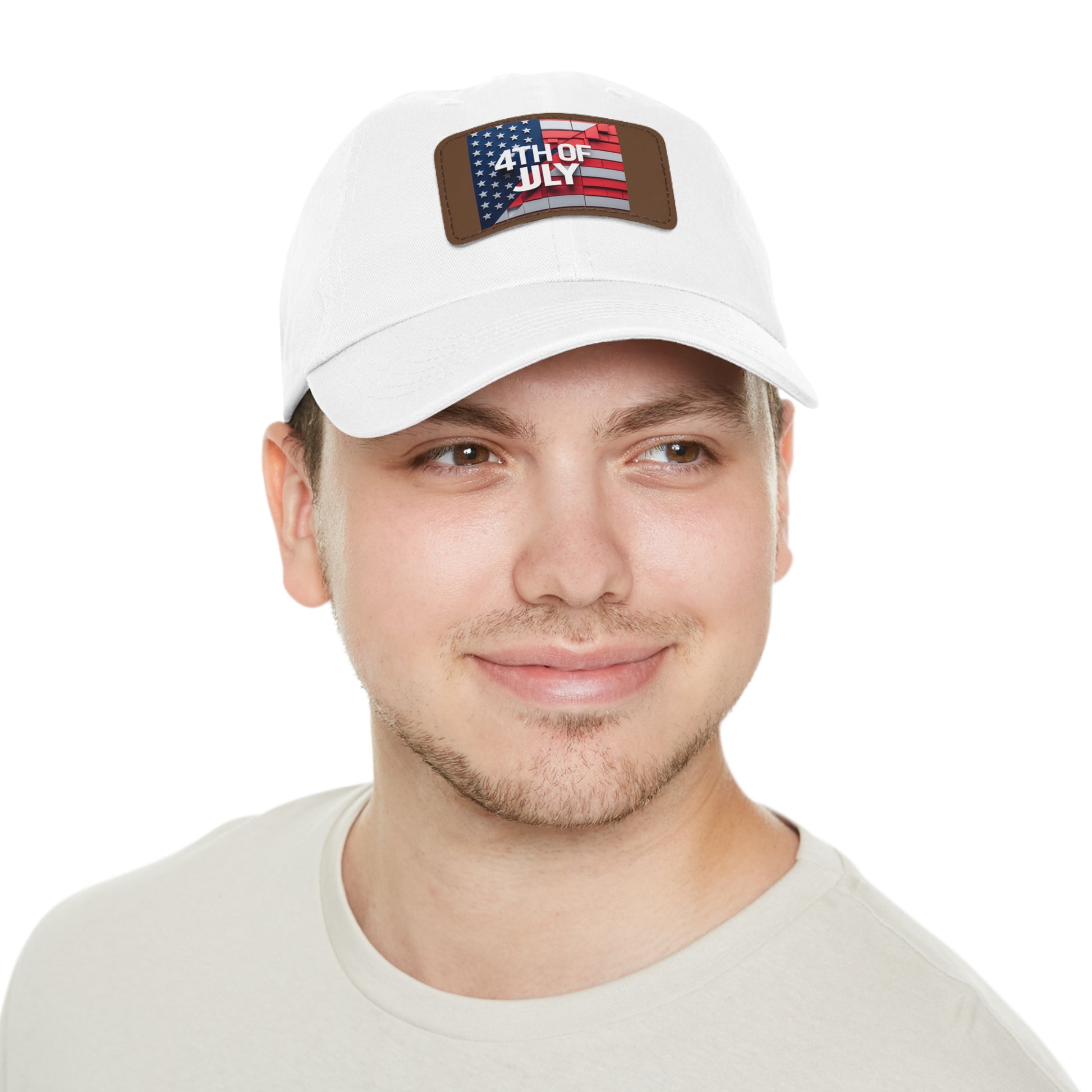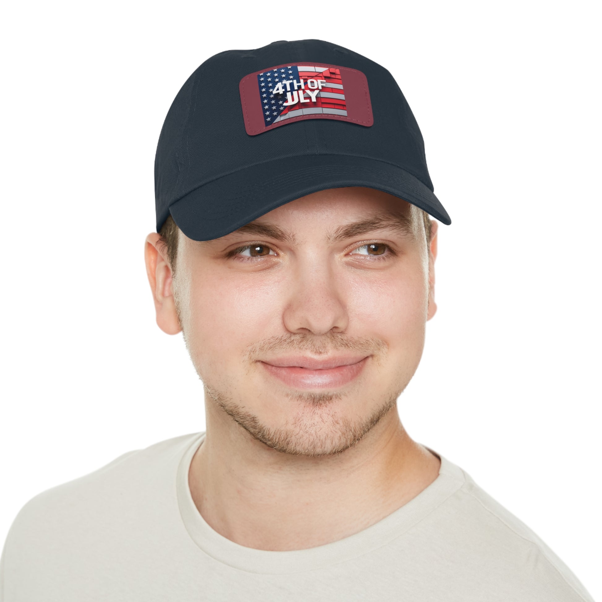 4th of July Dad Hat with Leather Patch - Patriotic Cap for Independence Day