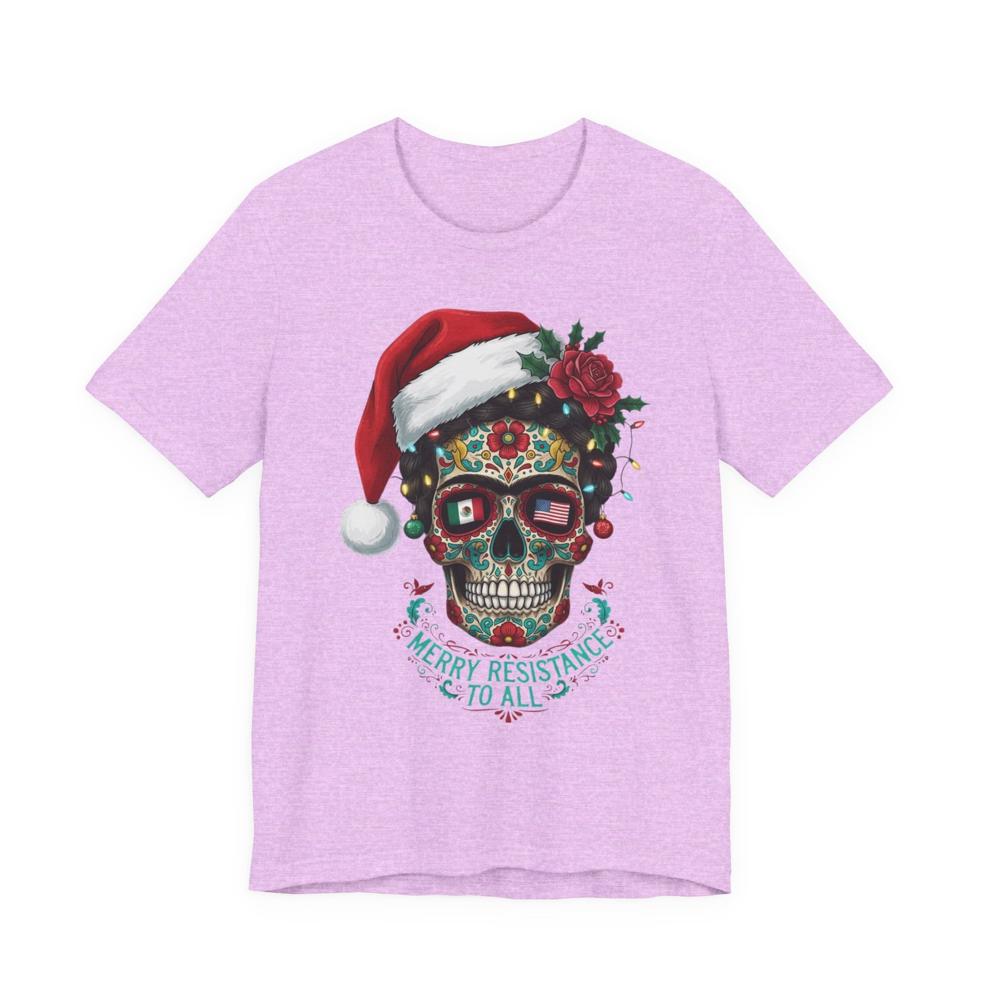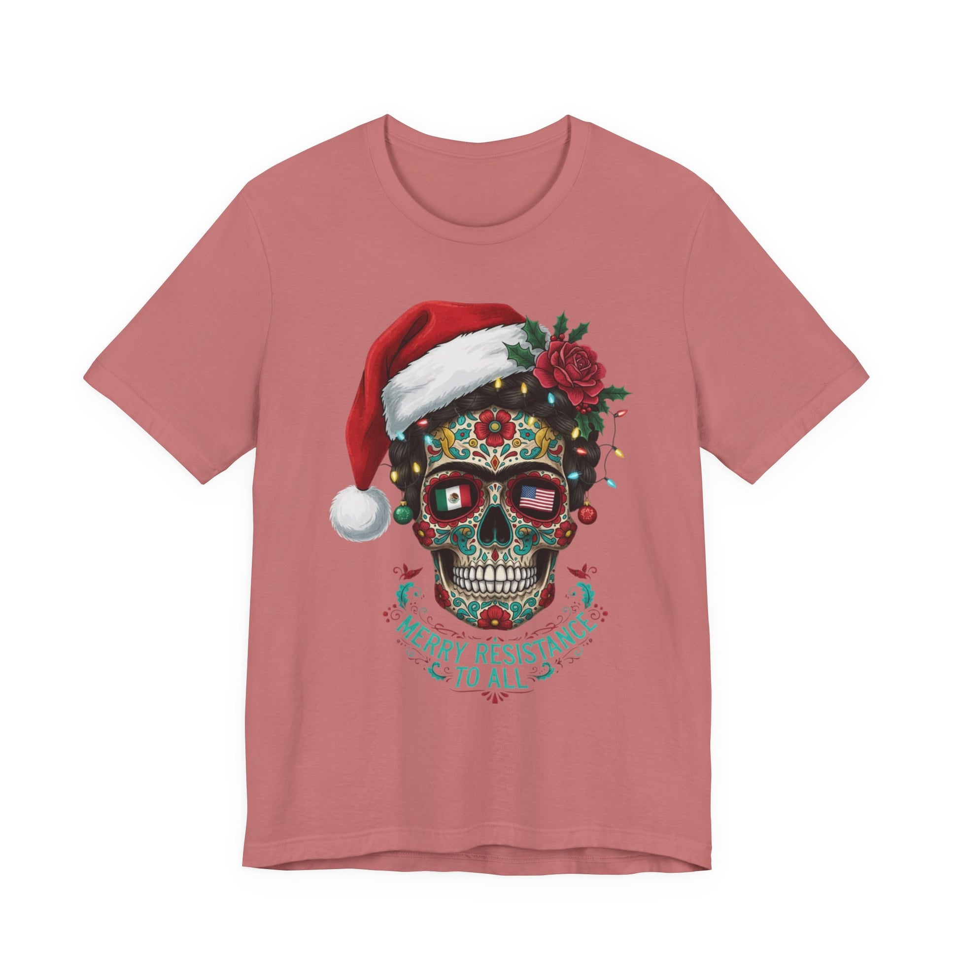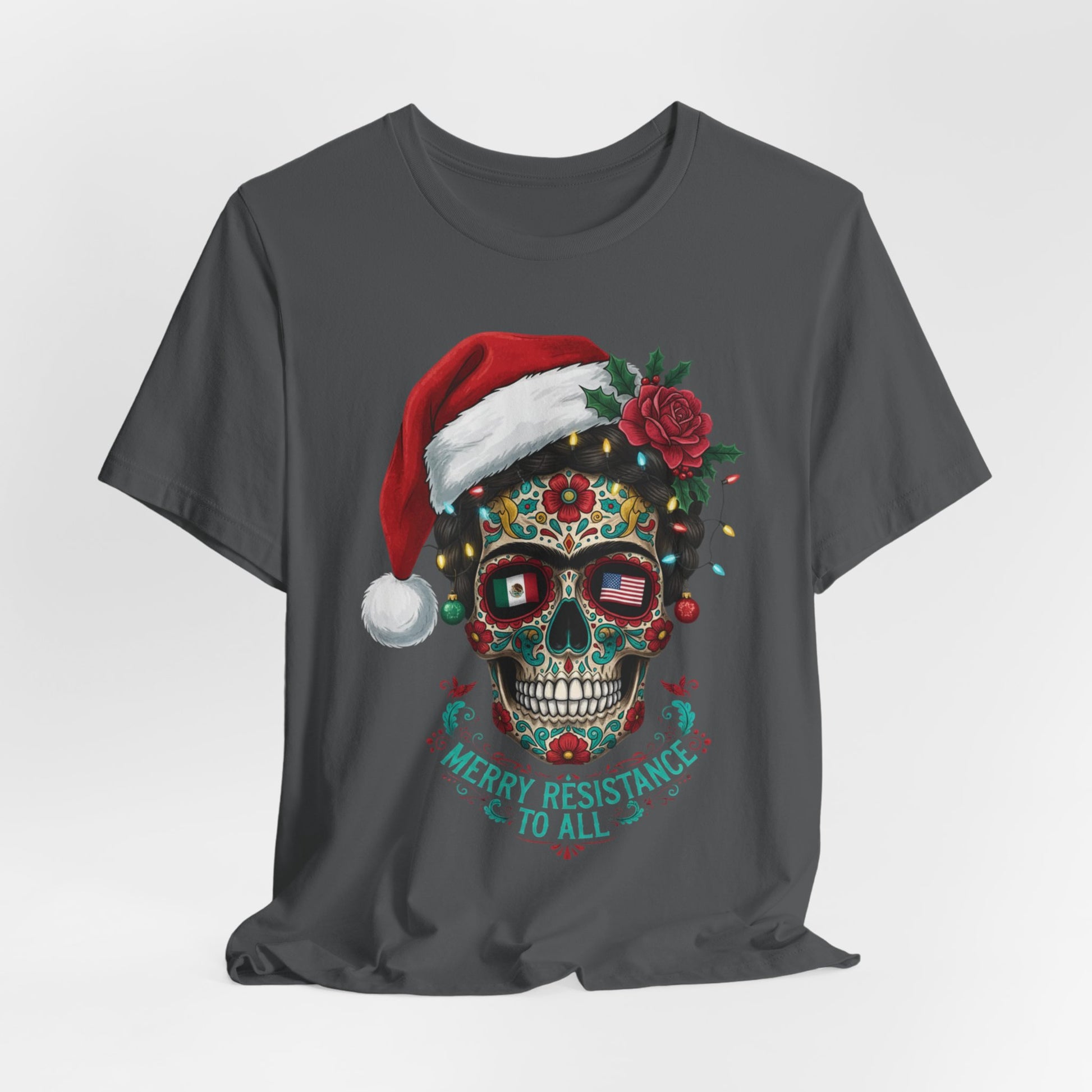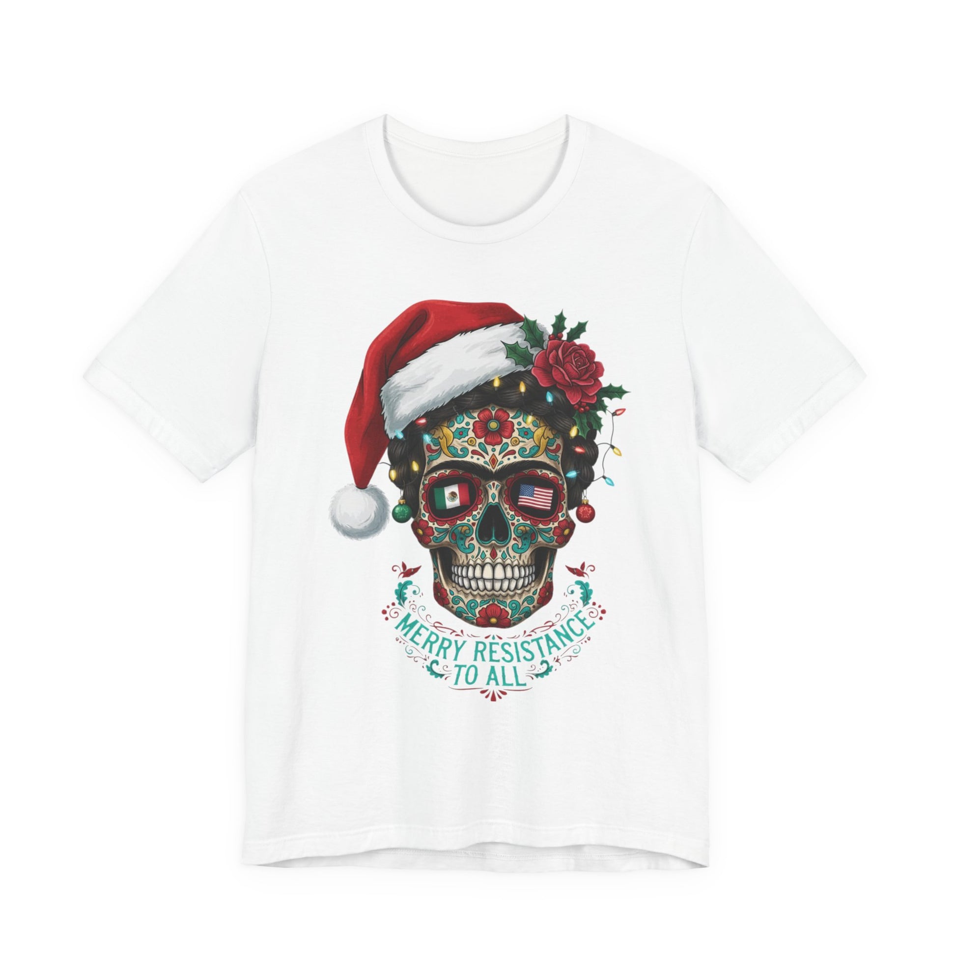 Christmas Sugar Skull T-Shirt — "Merry Resistance to All" Holiday Tee