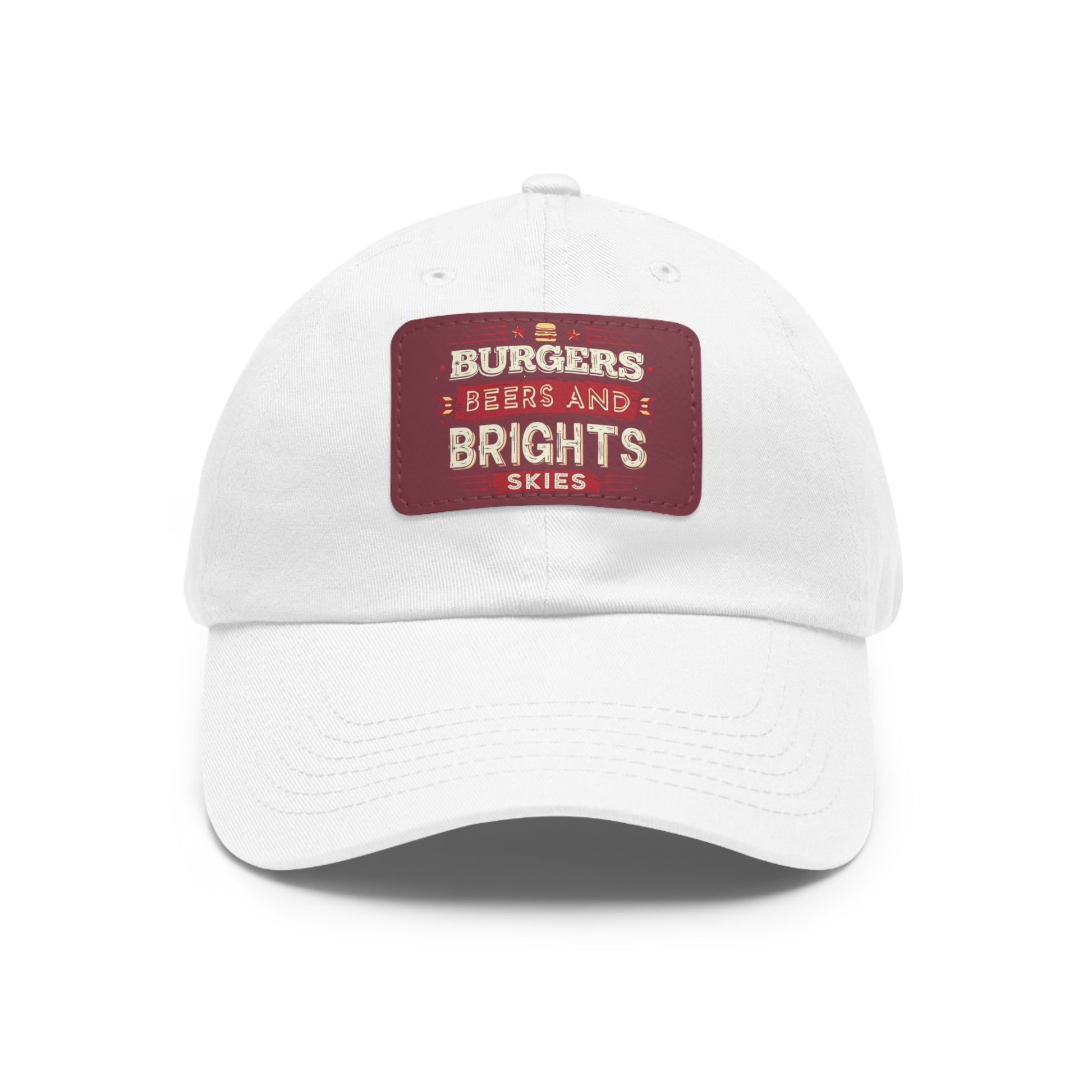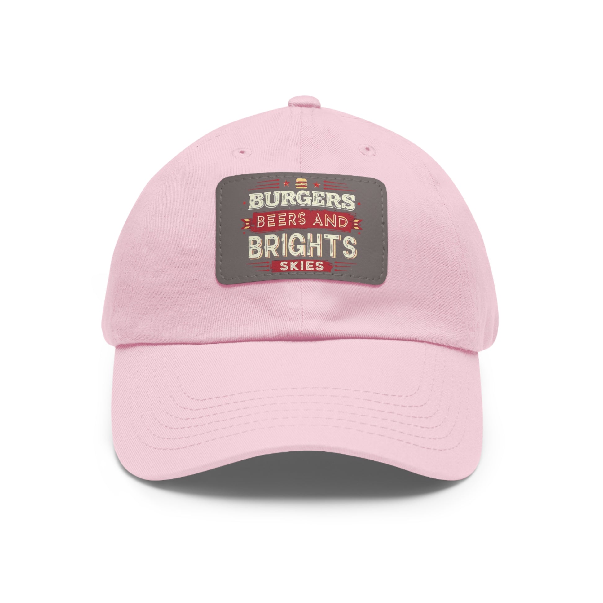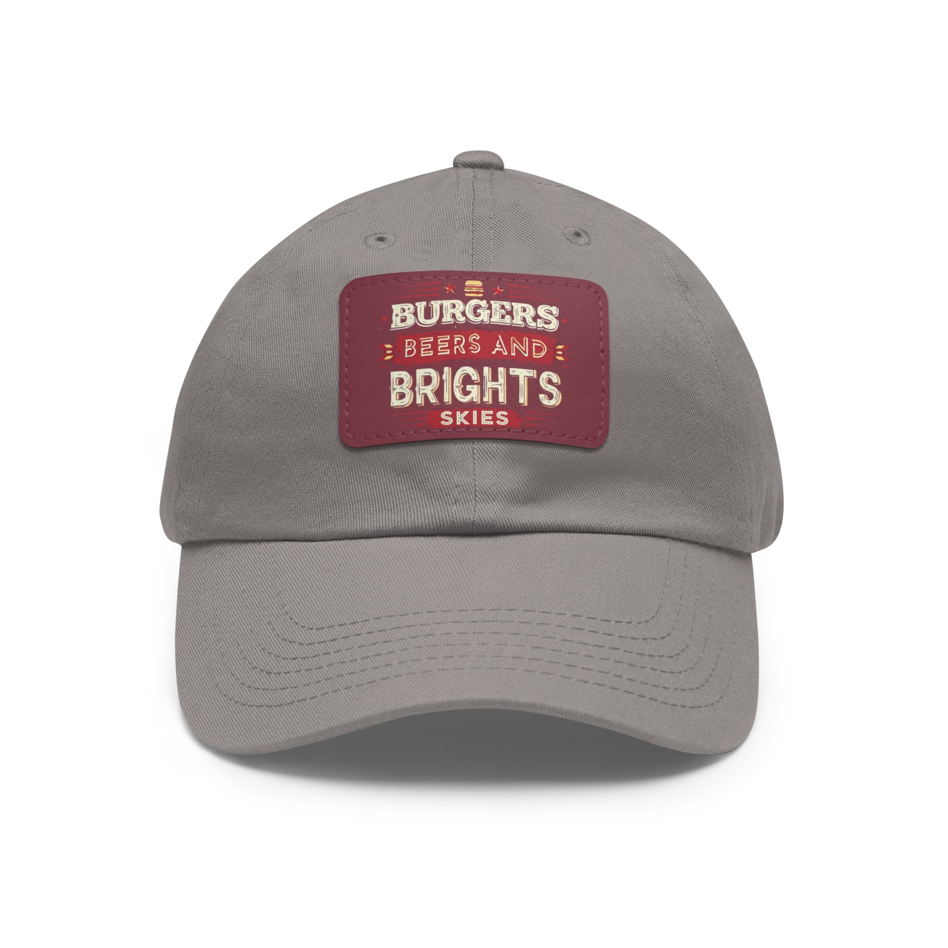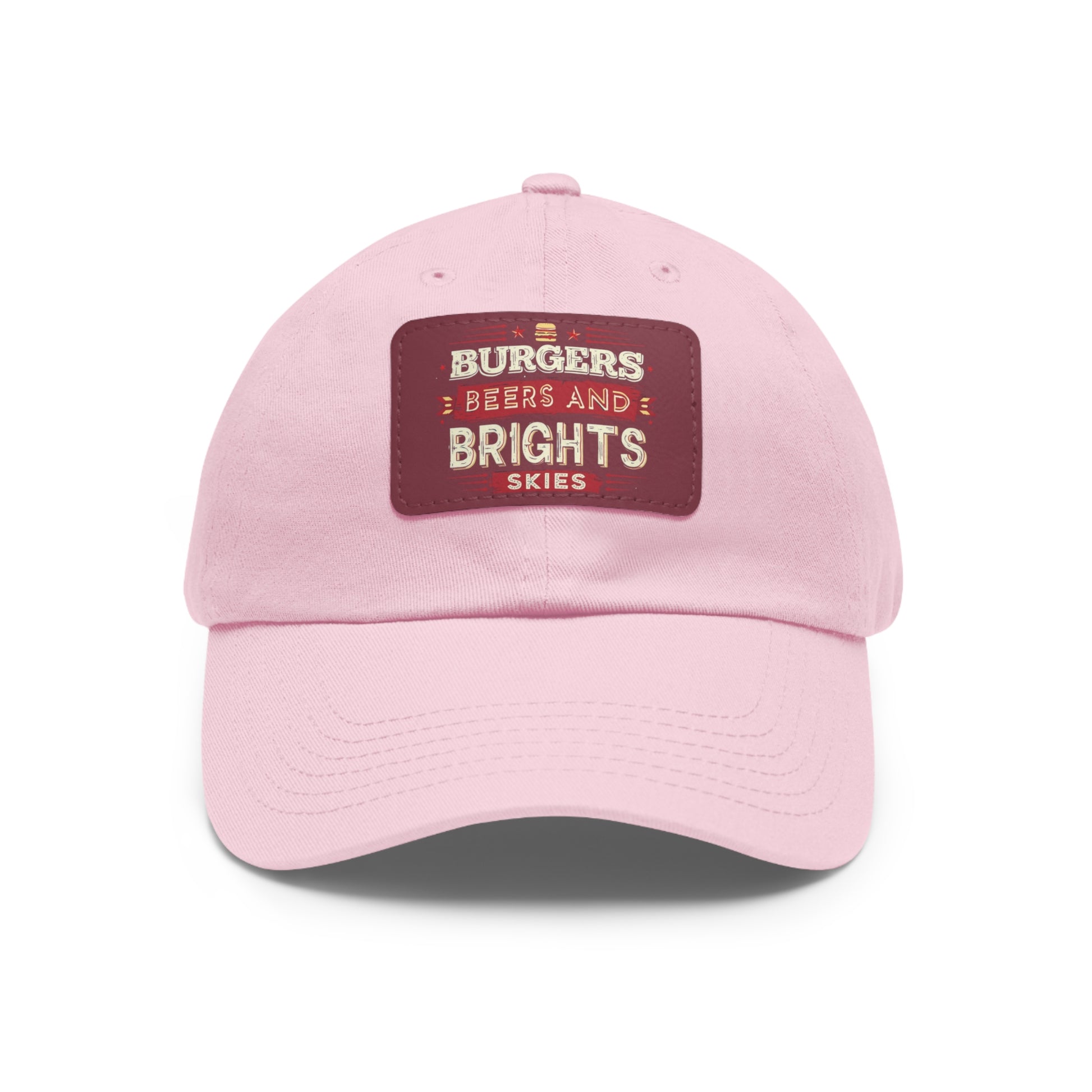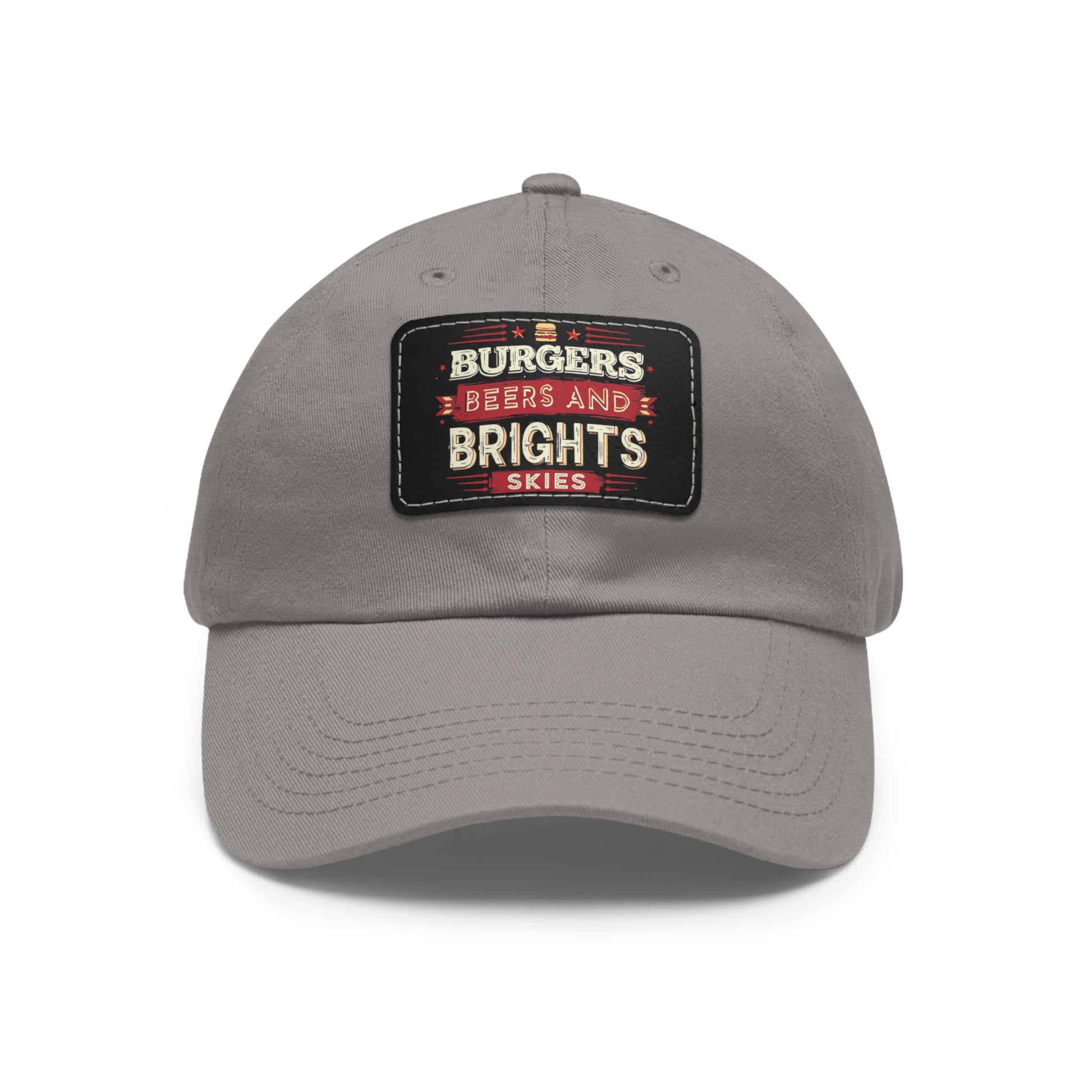 Dad Hat with Leather Patch - Burgers, Beers, and Bright Skies