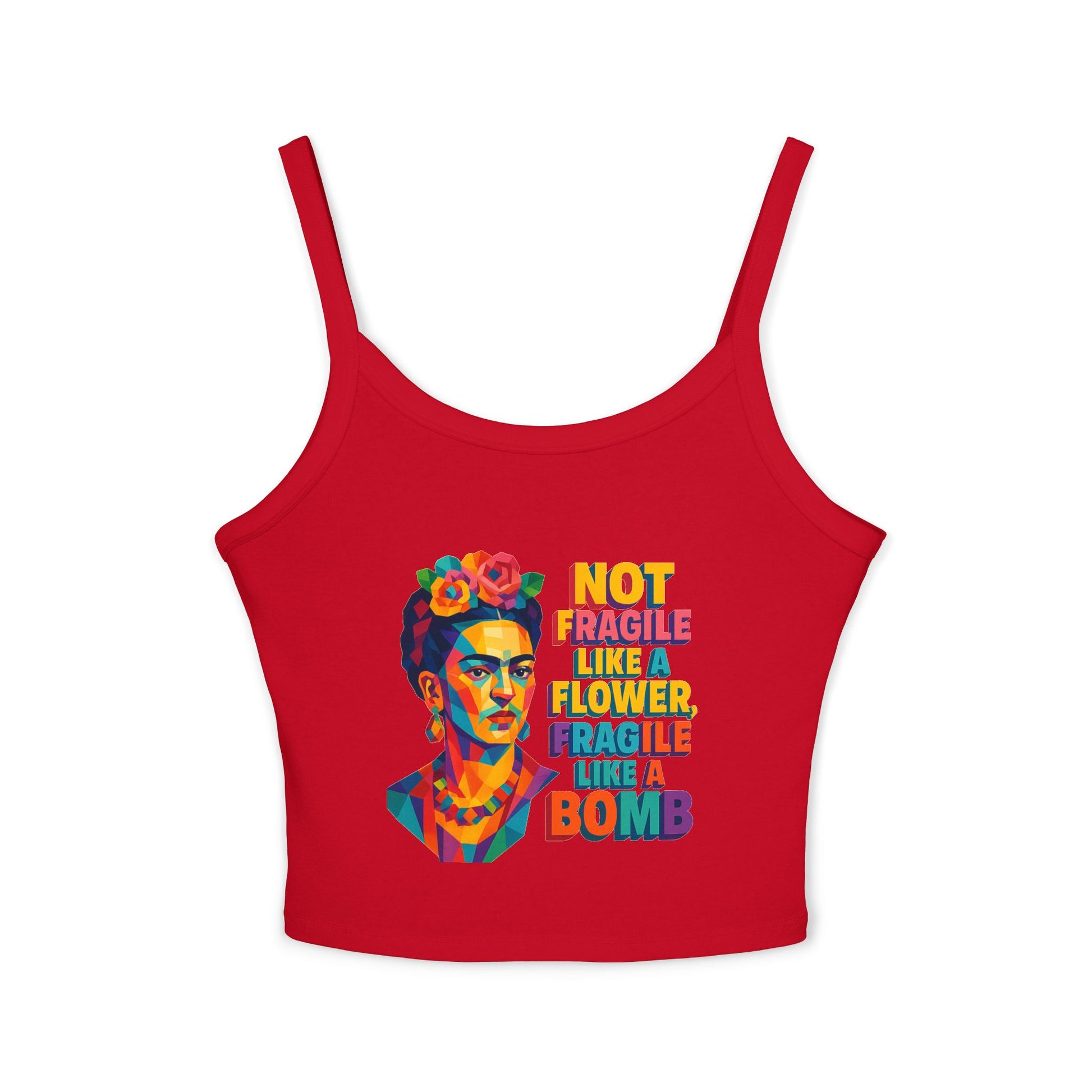 Frida Kahlo Inspired Spaghetti Strap Tank Top, Floral Art Top, Women's Graphic Tee, Gift for Art Lovers, Summer Wear, Festival Fashion