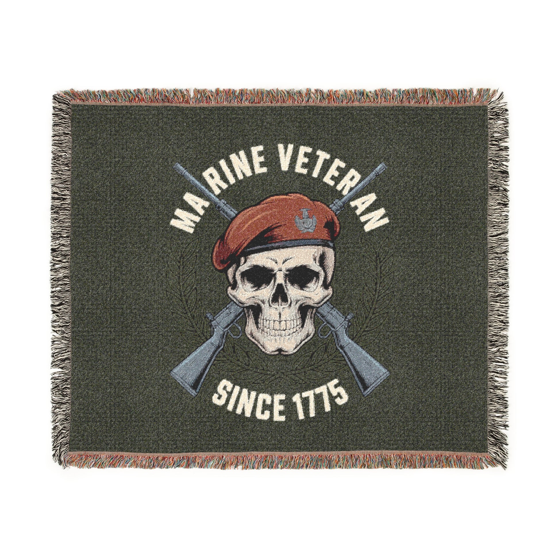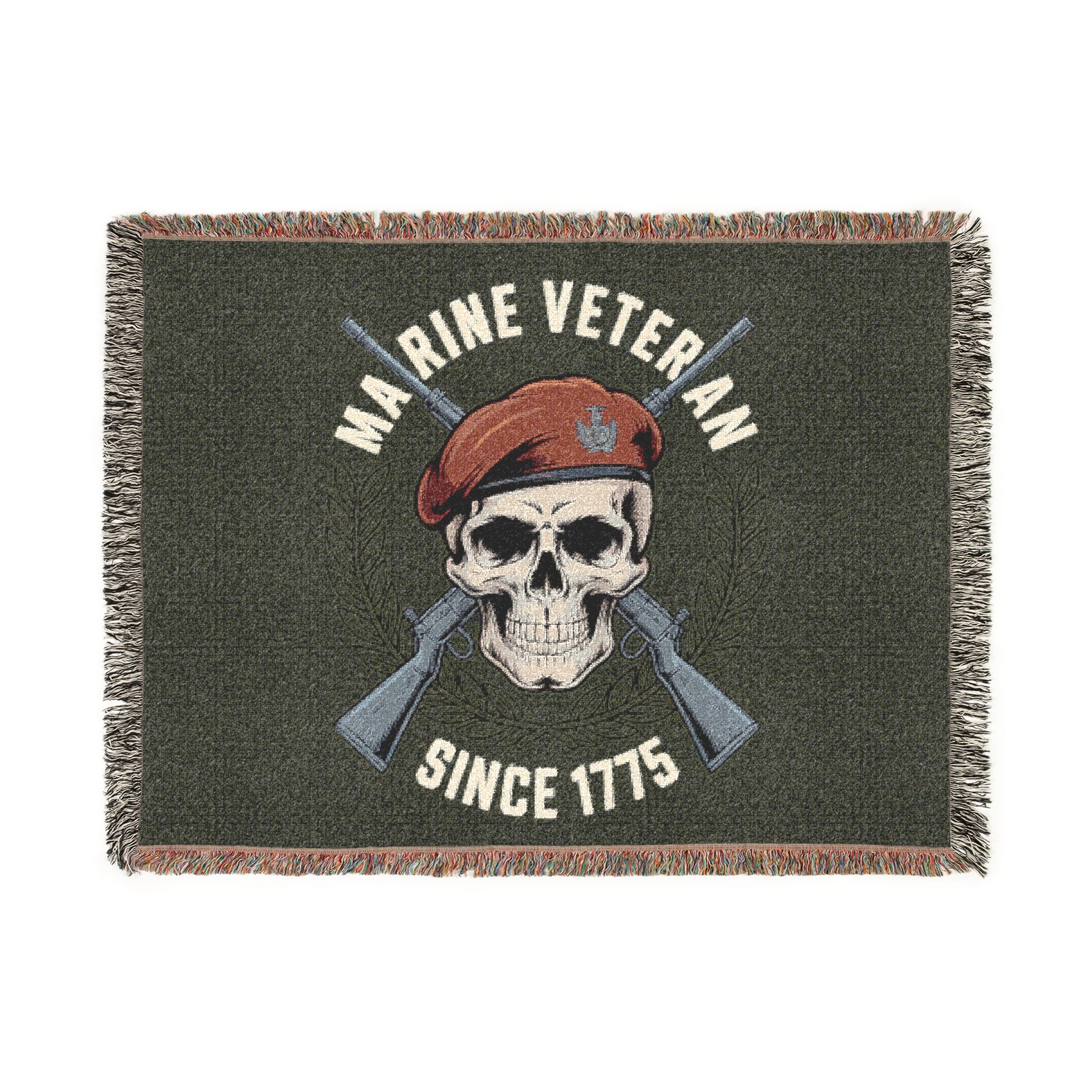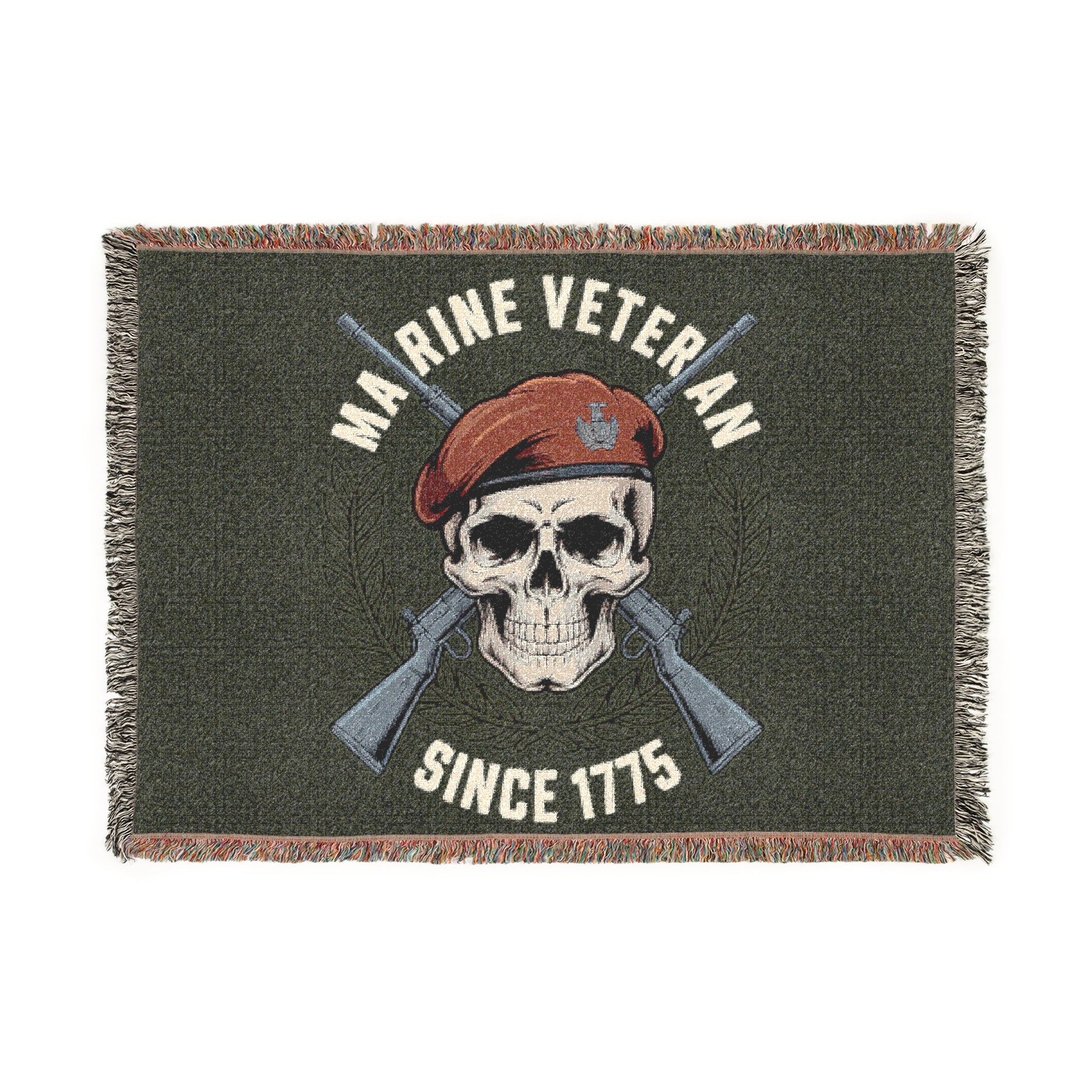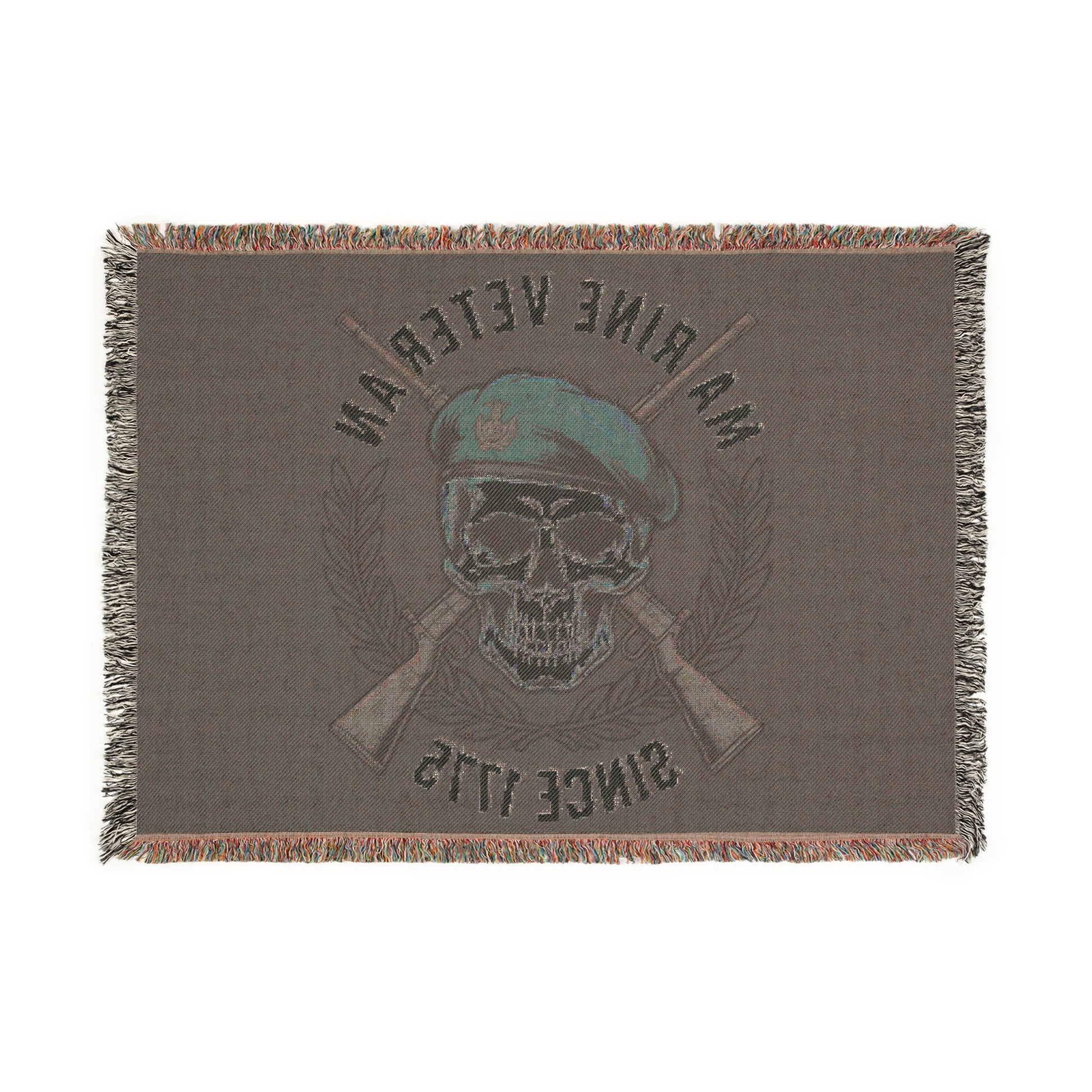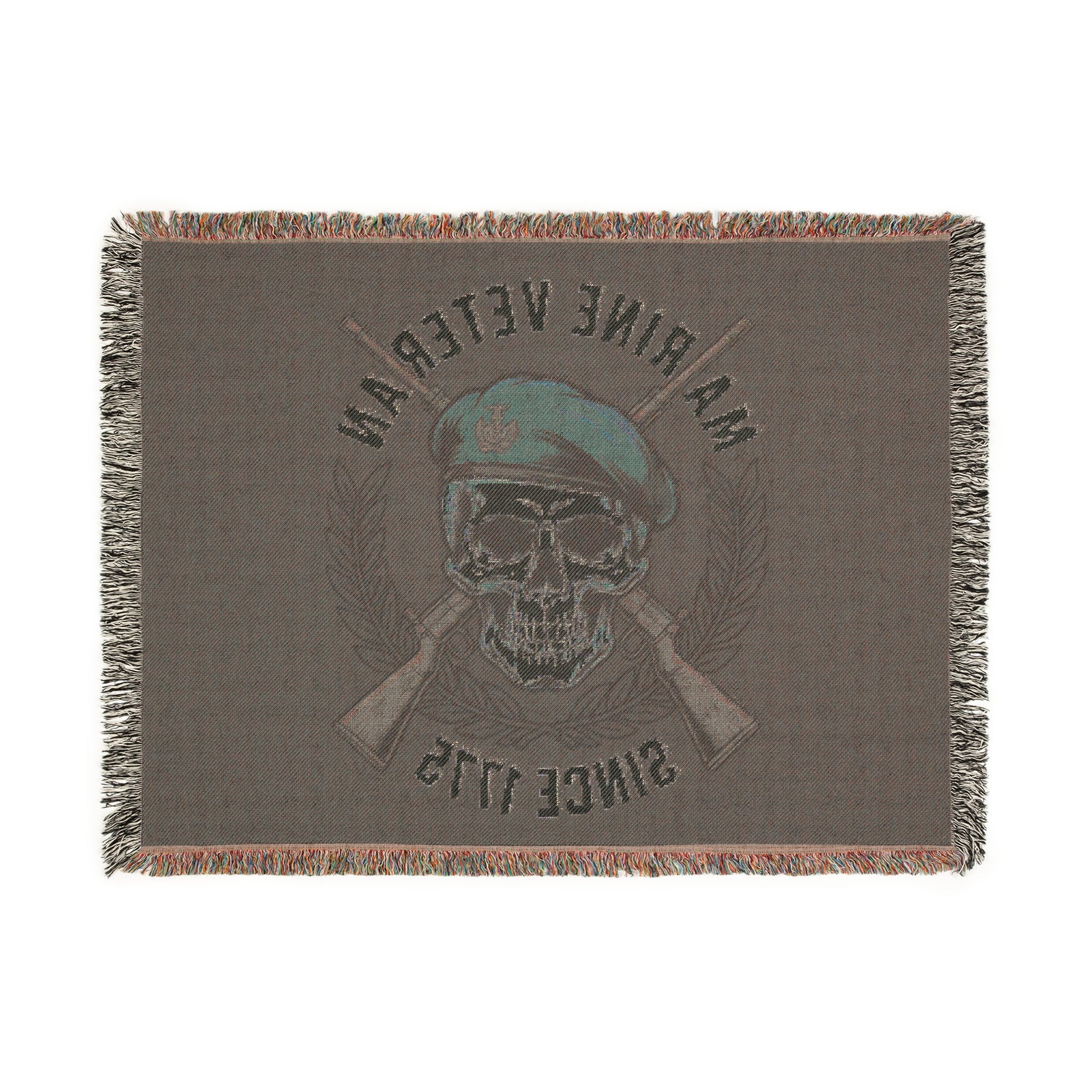 Marine Veteran Woven Blanket – "Since '75" Skull & Rifles Military Throw
