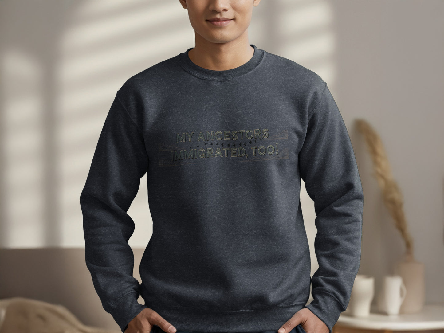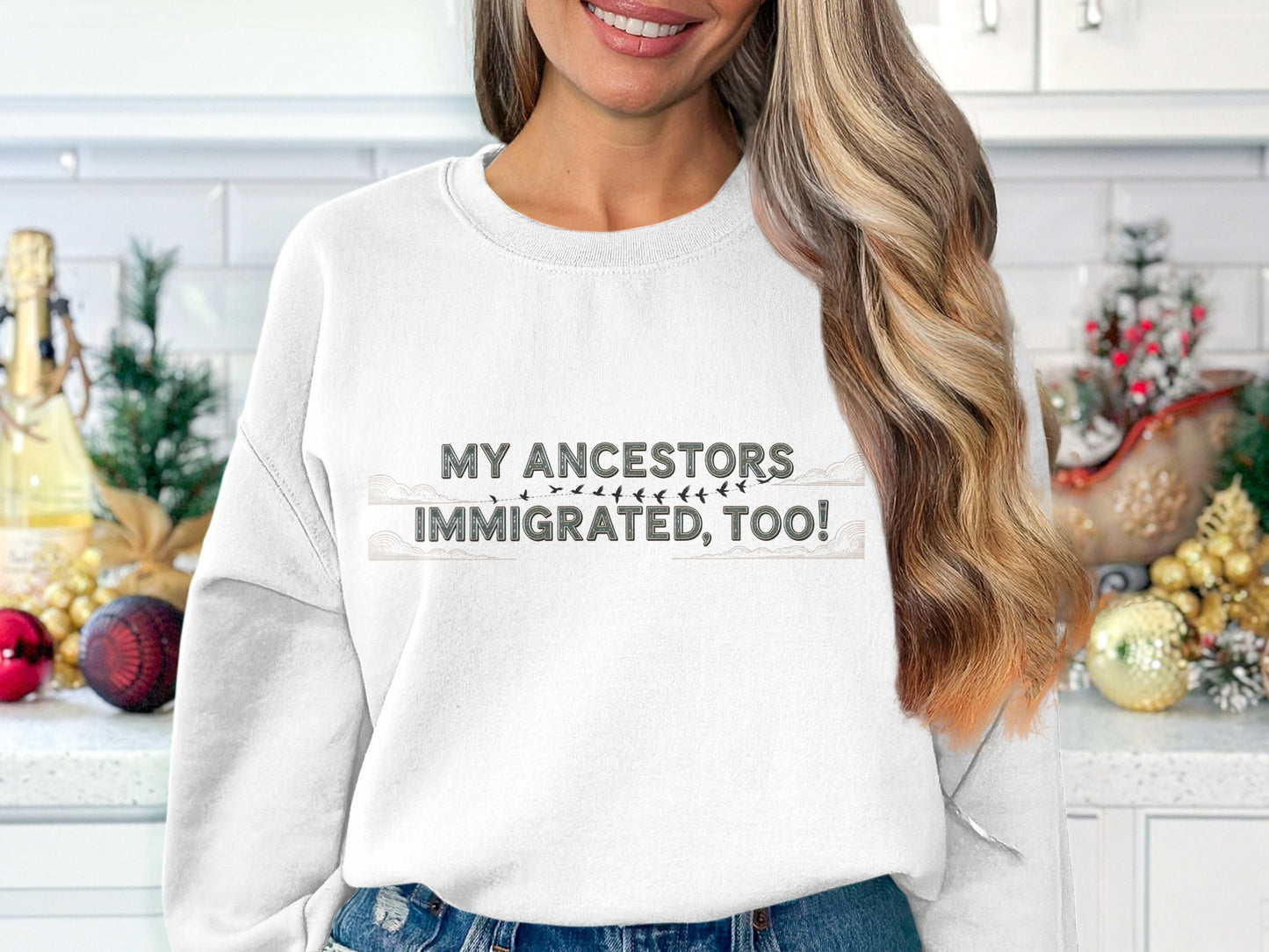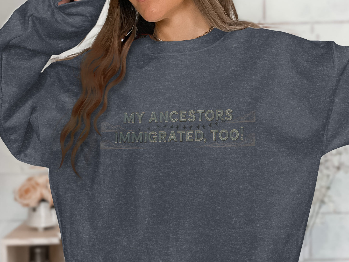 Celebrate diversity and heritage with these stylish sweatshirts featuring the heartfelt message "My Ancestors Immigrated Too!" Perfect for all-year wear.