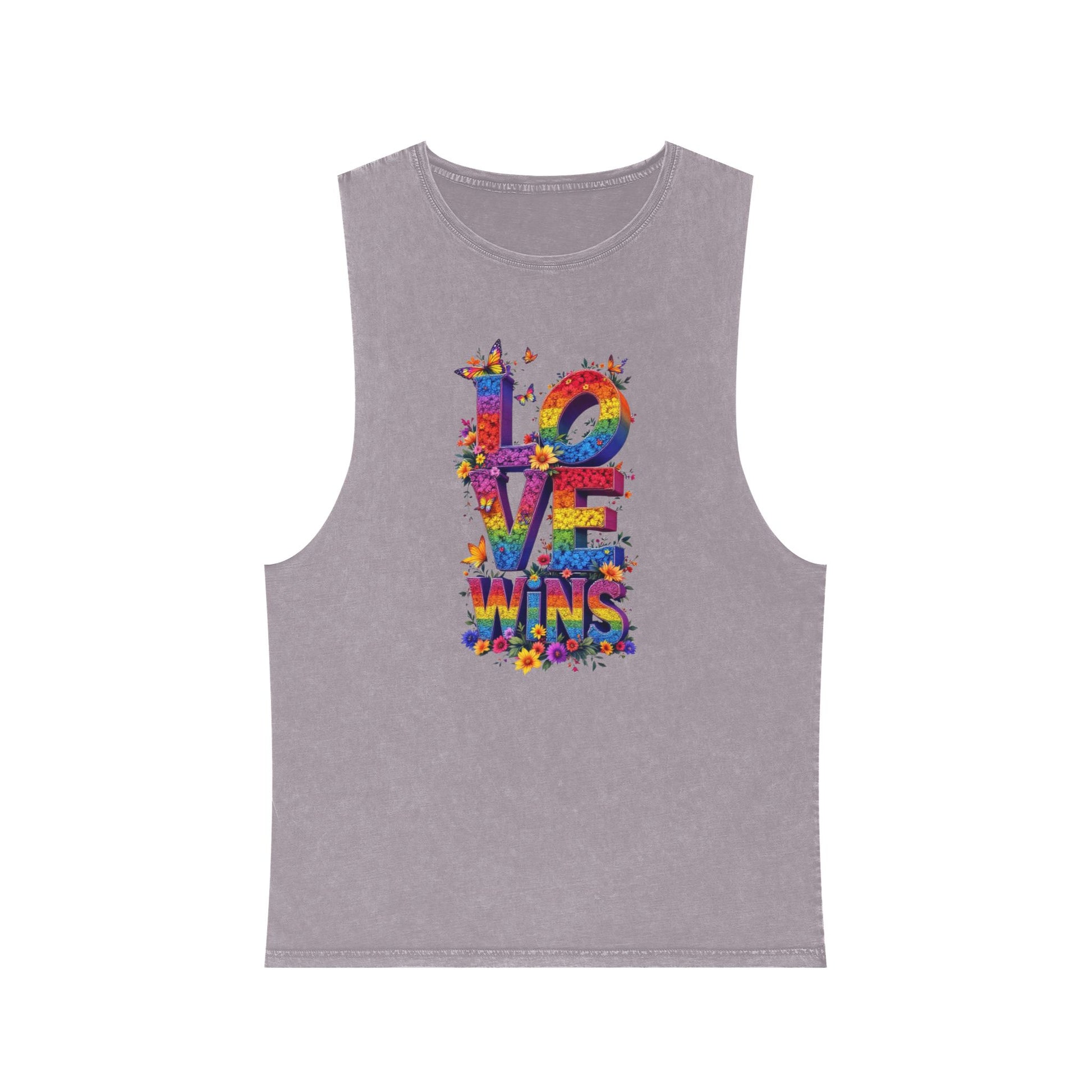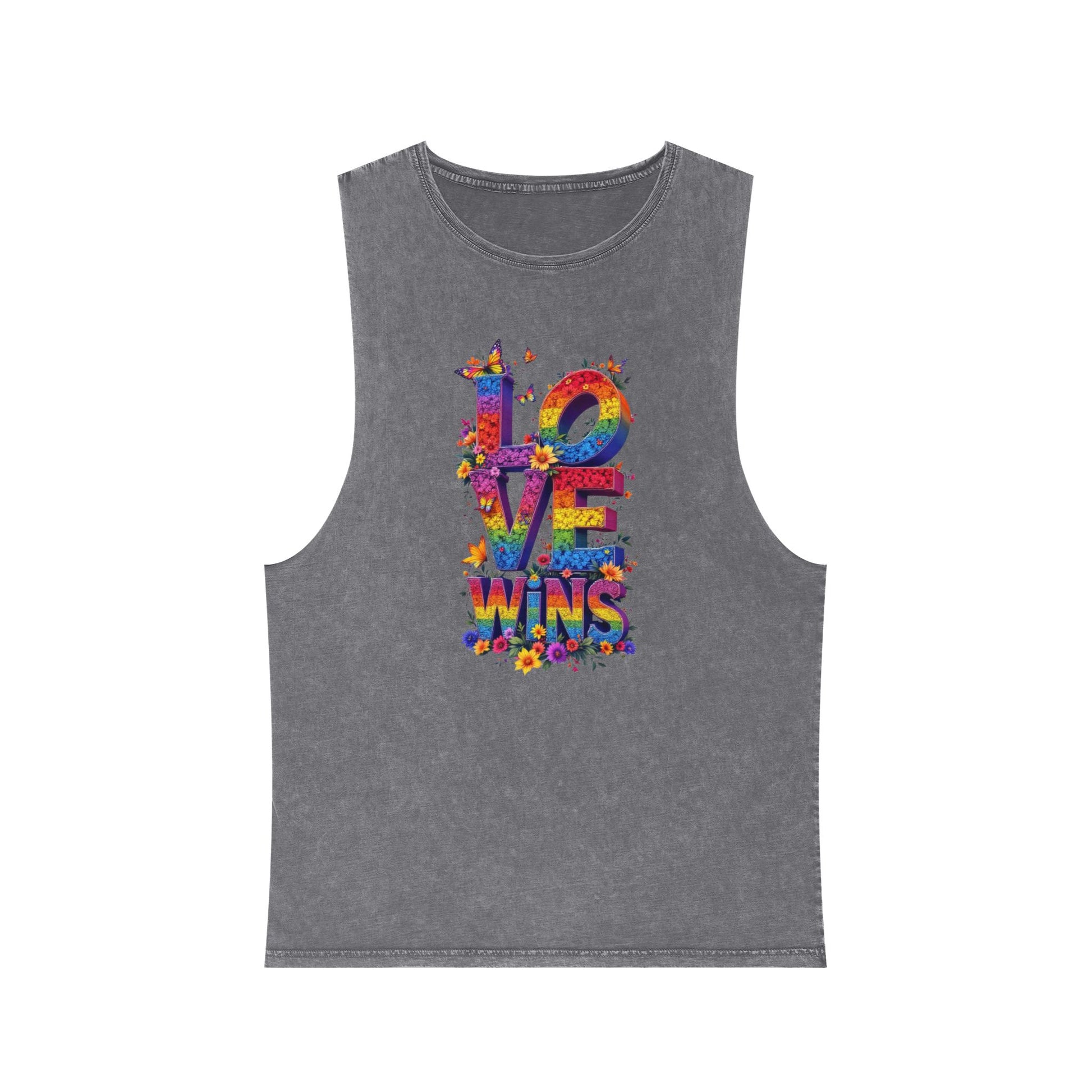 Unisex Stonewash Tank Top - 'Love Wins' Graphic Tee for LGBTQ+ Pride & Everyday Wear