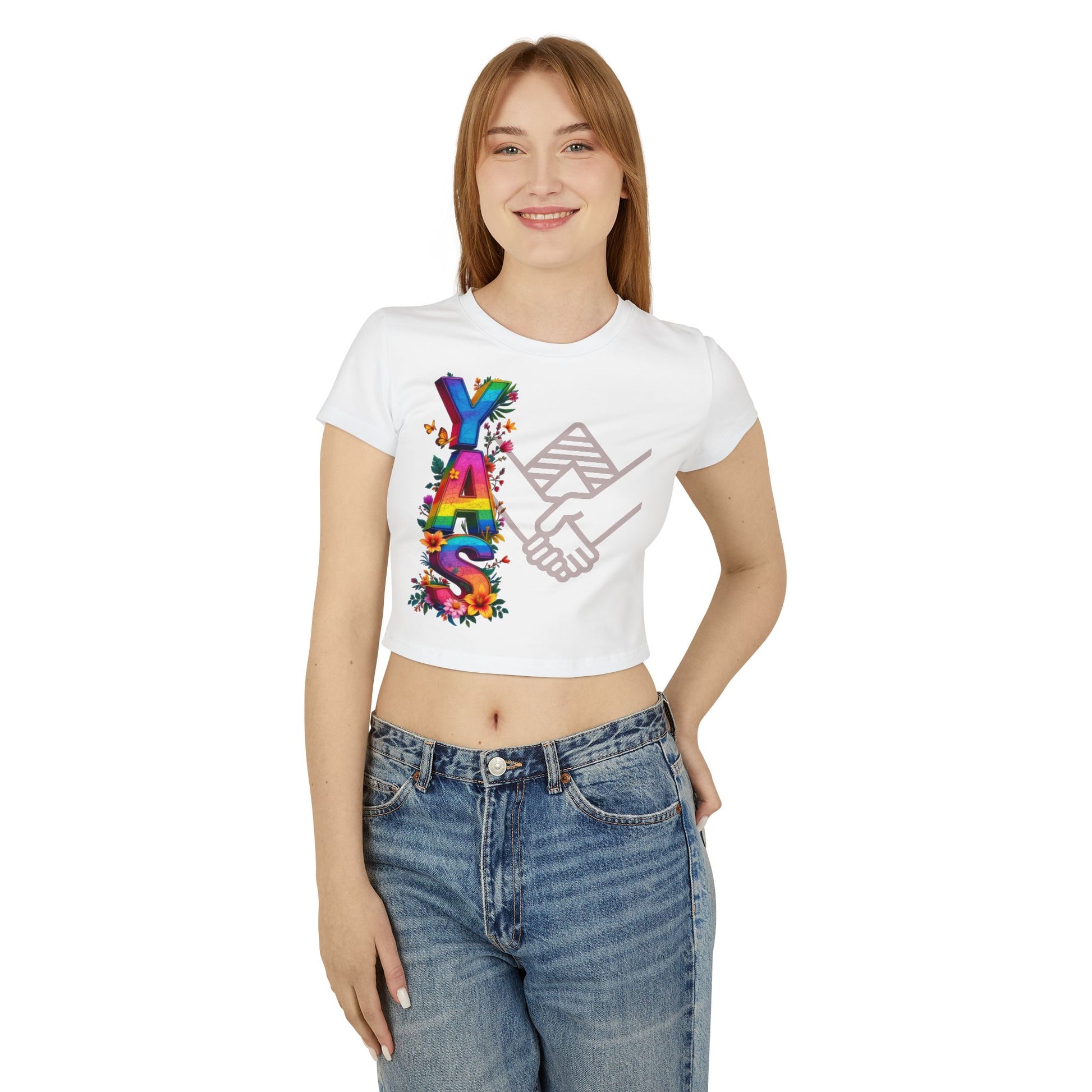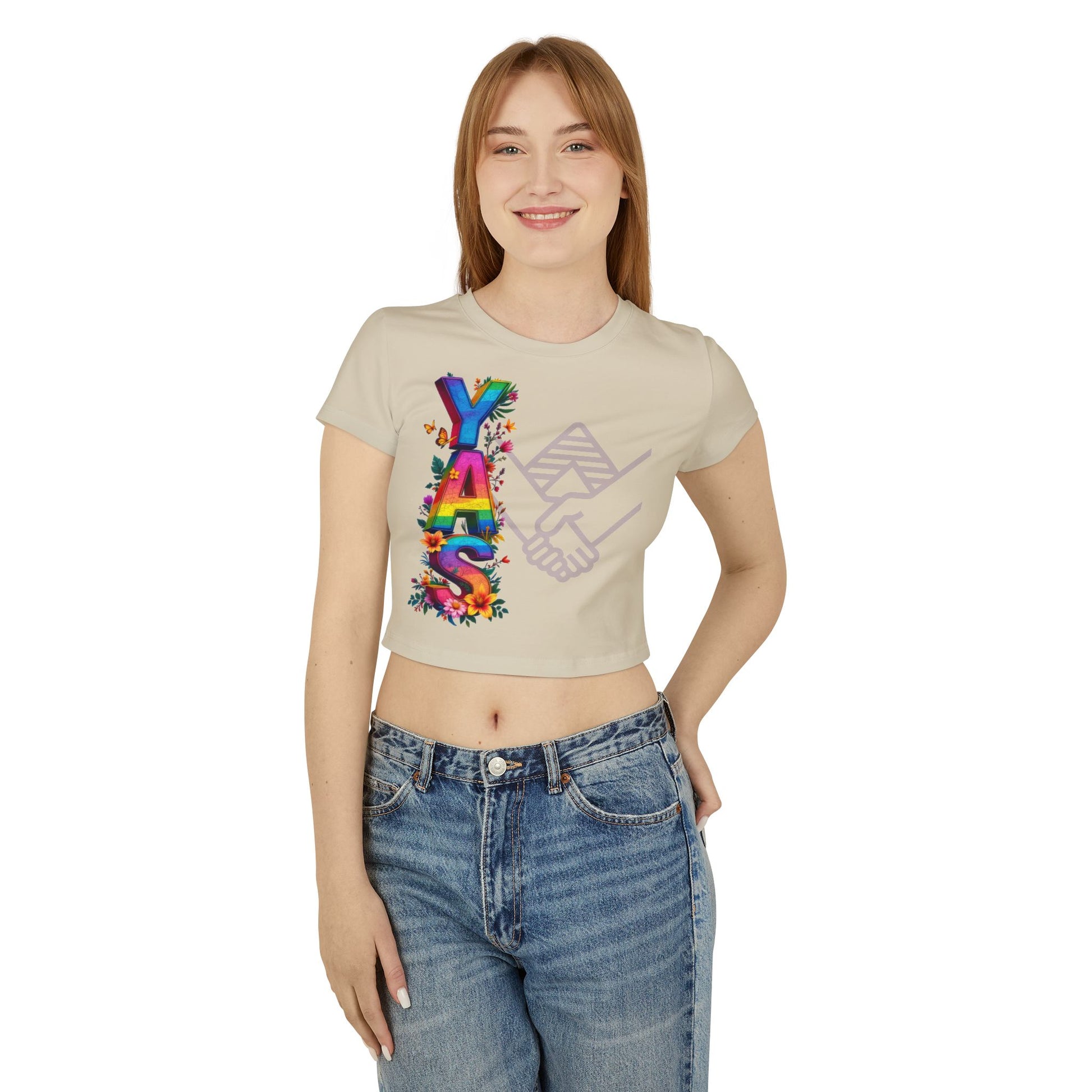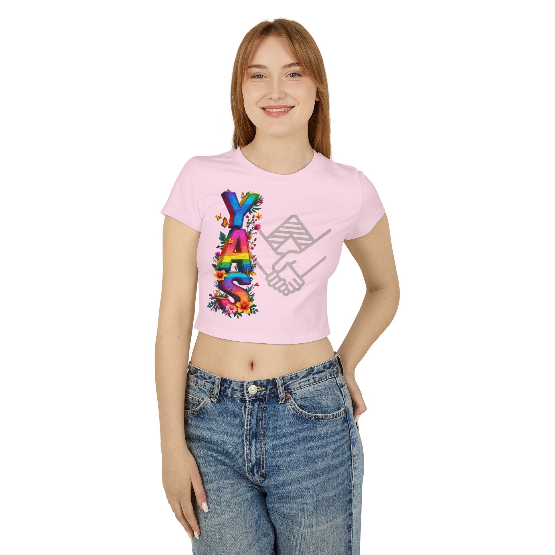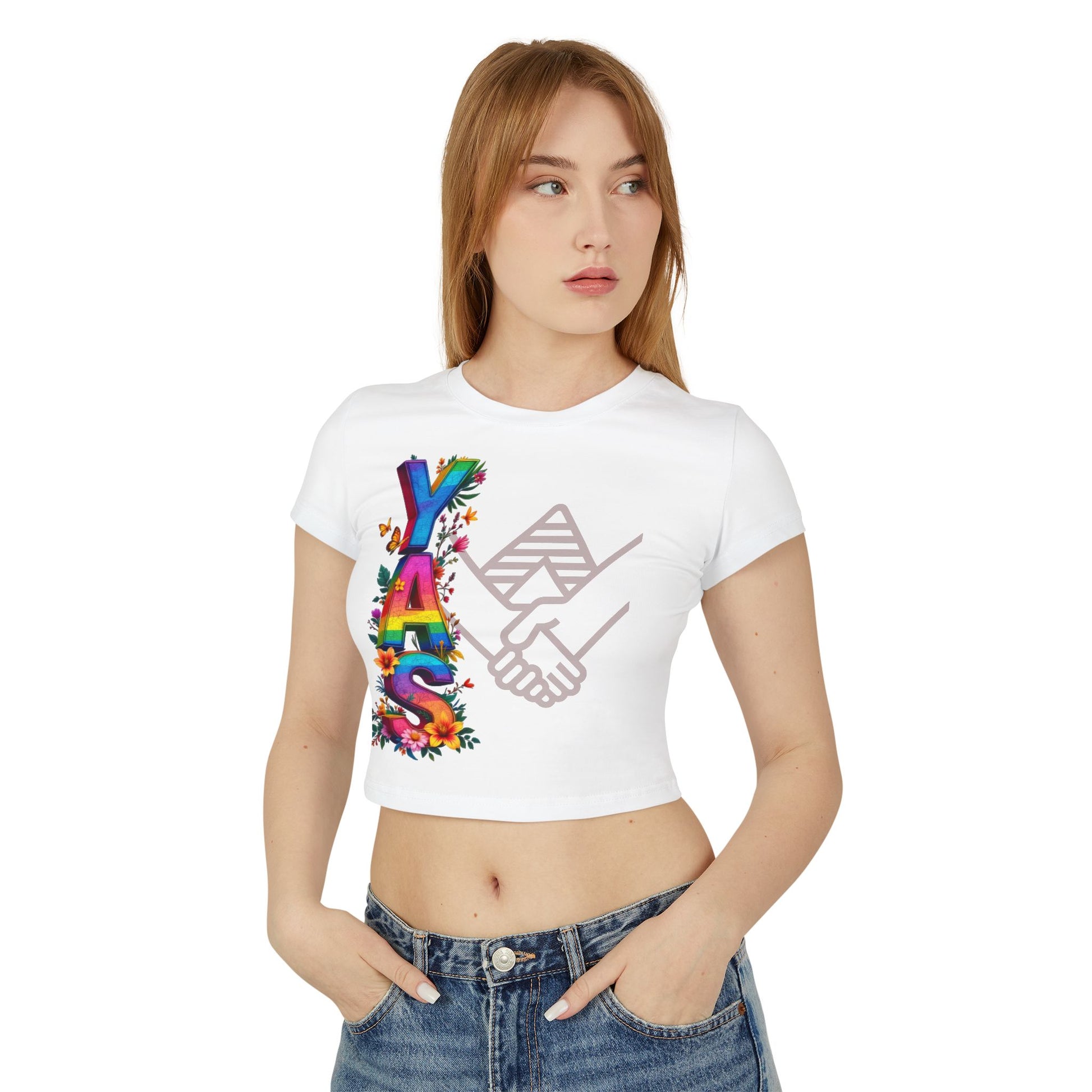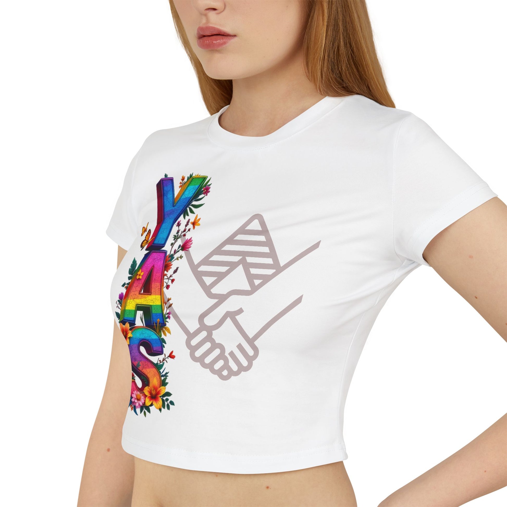 Embrace your vibrant spirit with this stylish Baby Tee. Crafted from 100% organic cotton, this tee not only looks good but feels great against the skin. Its slim fit hugs your silhouette, making it perfect for both casual outings and laid-back hangouts with friends. The cheerful design infused with colorful elements brings a sense of joy and positivity that brightens any occasion. Ideal for celebrating pride, friendship gatherings, or simply expressing your unique vibe day-to-day, this Baby Tee is perfect for anyone looking to showcase their personality with flair. Whether it's for a birthday, festival, or casual day out, this tee adds a pop of color to your wardrobe.